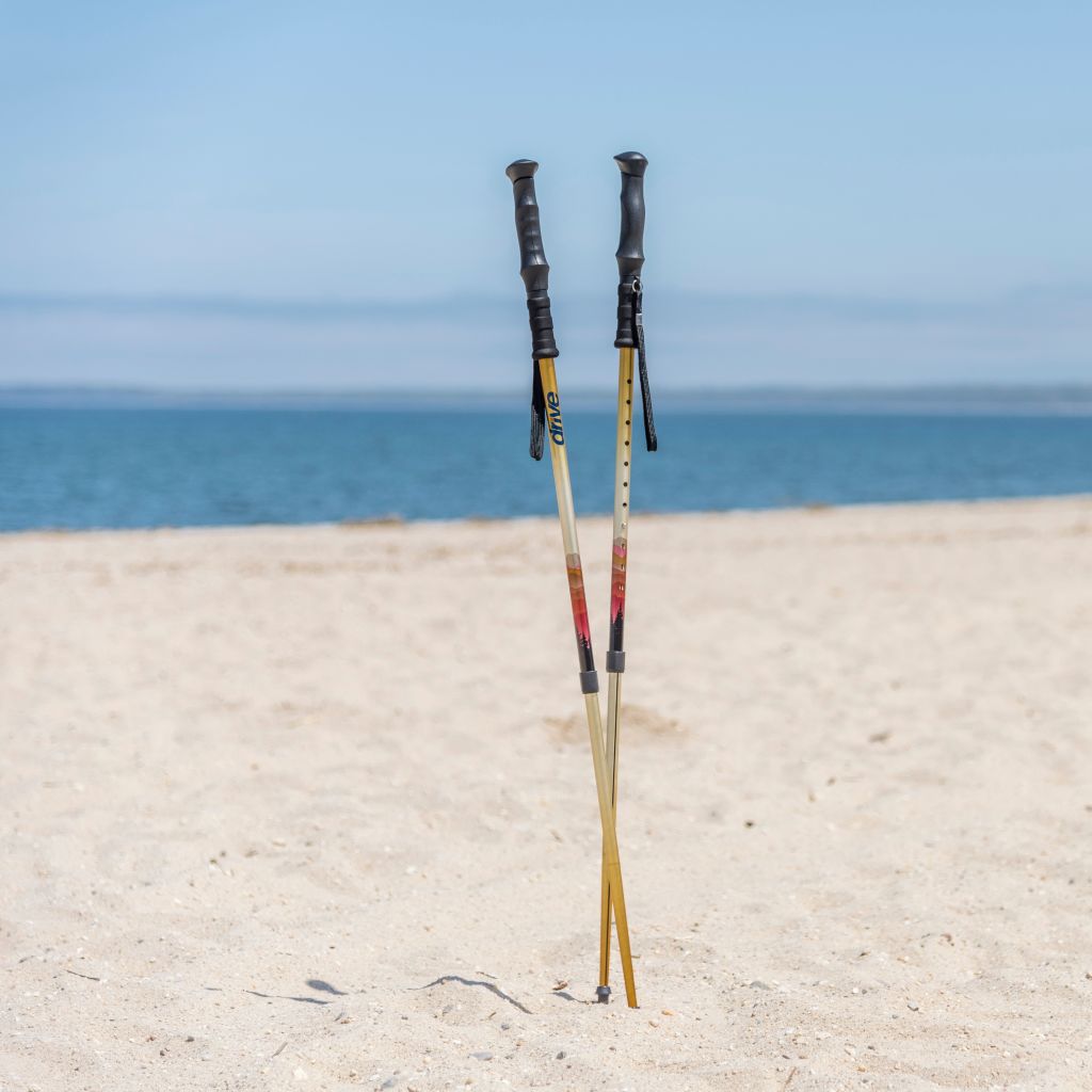 • Steel Tips, The poles’ integrated steel tip provides traction on nature trains, slippery or soft terrain and beaches.